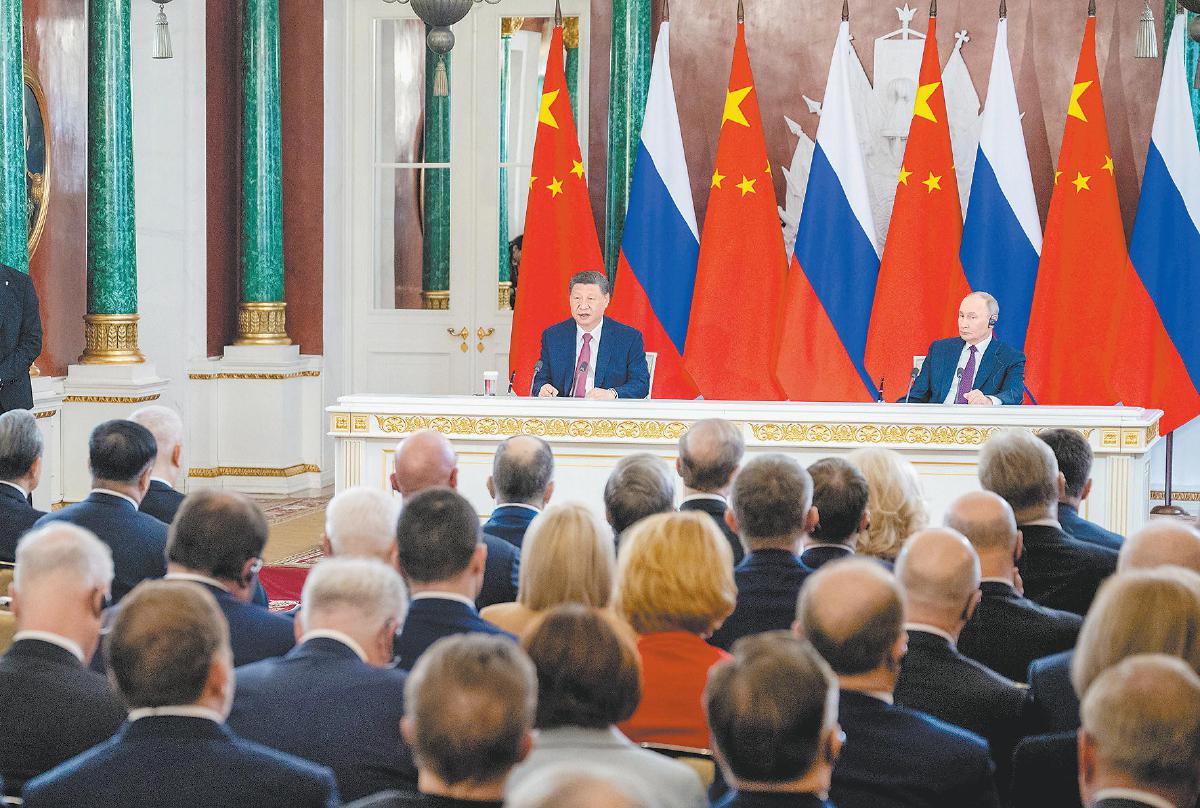 要坚持公平正义,做国际秩序的捍卫者。中国和俄罗斯作为第二次世界大战的亚洲和欧洲主战场,为世界反法西斯战争胜利作出决定性贡献,也为战后国际秩序的建立奠定了基石。作为国际社会的稳定、积极、进步力量,中俄两国要继续坚定站在一起,坚决维护以联合国为核心的国际体系和以国际法为基础的国际秩序,持续推进平等有序的世界多极化。