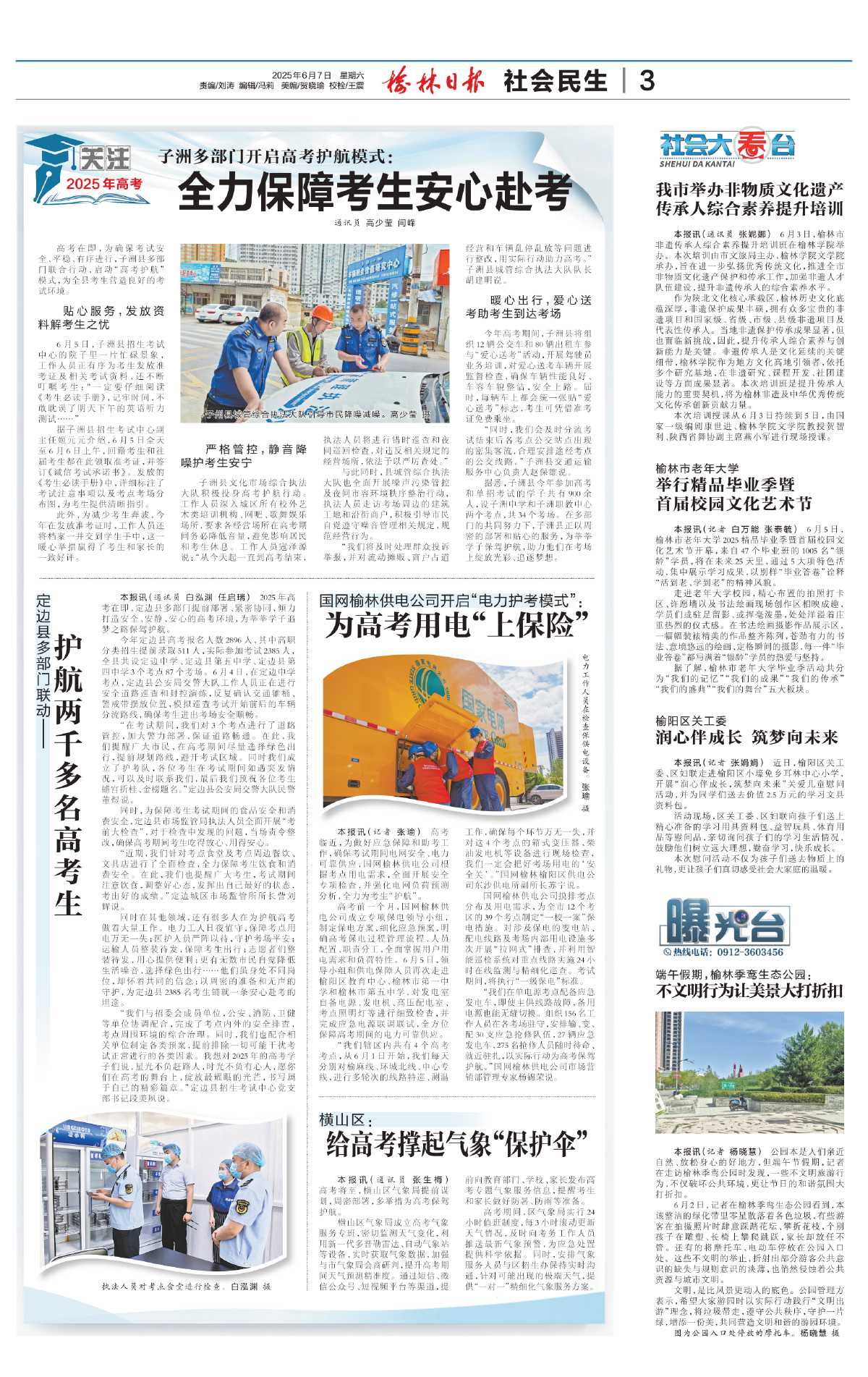 横山区气象局成立高考气象服务专班,密切监测天气变化,利用新一代多普勒雷达、自动气象站等设备,实时获取气象数据,加强与市气象局会商研判,提升高考期间天气预测精准度。通过短信、微信公众号、短视频平台等渠道,提前向教育部门、学校、家长发布高考专题气象服务信息,提醒考生和家长做好防暑、防雨等准备。