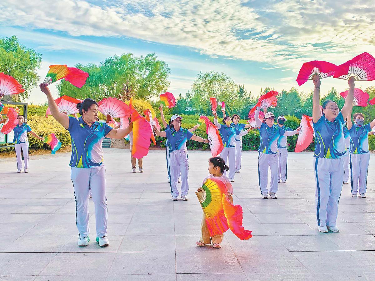 晚饭过后,溽暑渐散,微风轻拂,在定边火车站广场,随着动感的音乐响起,人群迅速聚拢。今年60岁的市民赵凤琴身着鲜亮舞服,步履轻快地融入舞动的人潮。在这里,男女老少踩着欢快的节拍尽情摇摆,舞步翻飞间,欢声笑语此起彼伏。退休后的赵凤琴拥有了更多闲暇时间,广场舞成了她晚年生活的新寄托。“现在生活条件好了,我每天早晚坚持锻炼,跳跳广场舞,不仅心情好了,病也少了,还能结识很多朋友,真的很不错。”赵凤琴说。