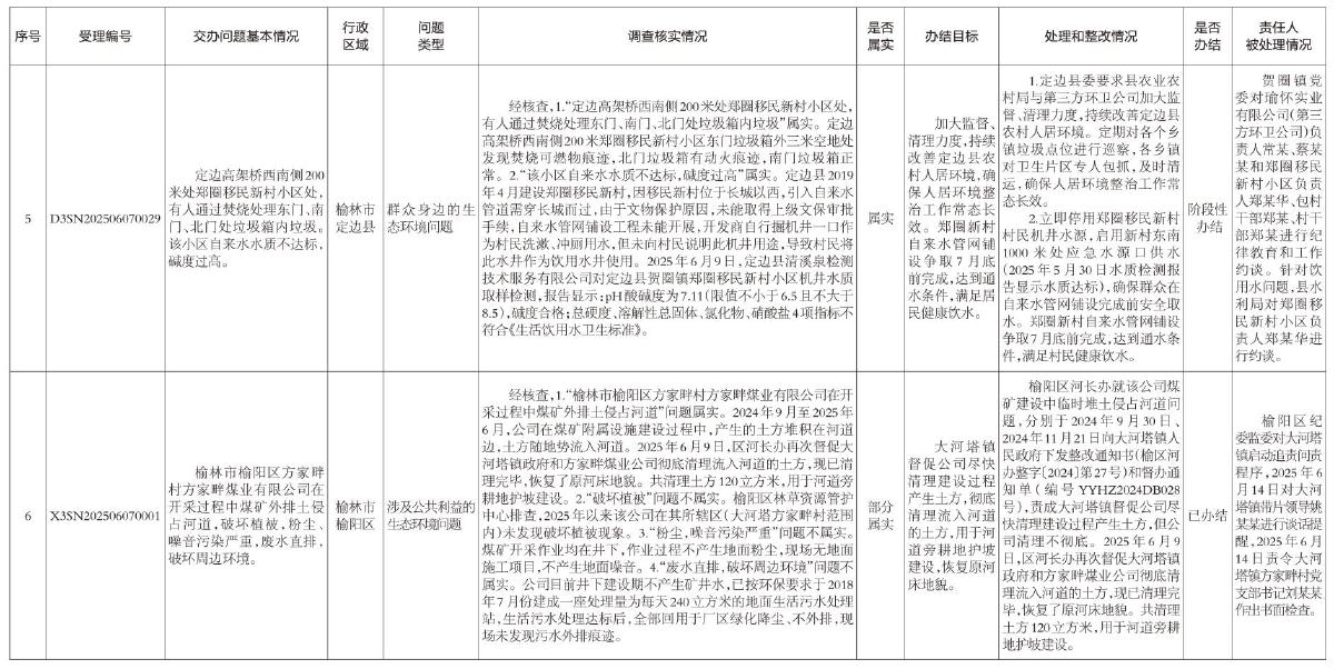 截至6月17日,中央第四生态环境保护督察组转办榆林市的第十一批6件信访件,已办结4件、阶段性办结2件。根据督察要求,现予以公开。