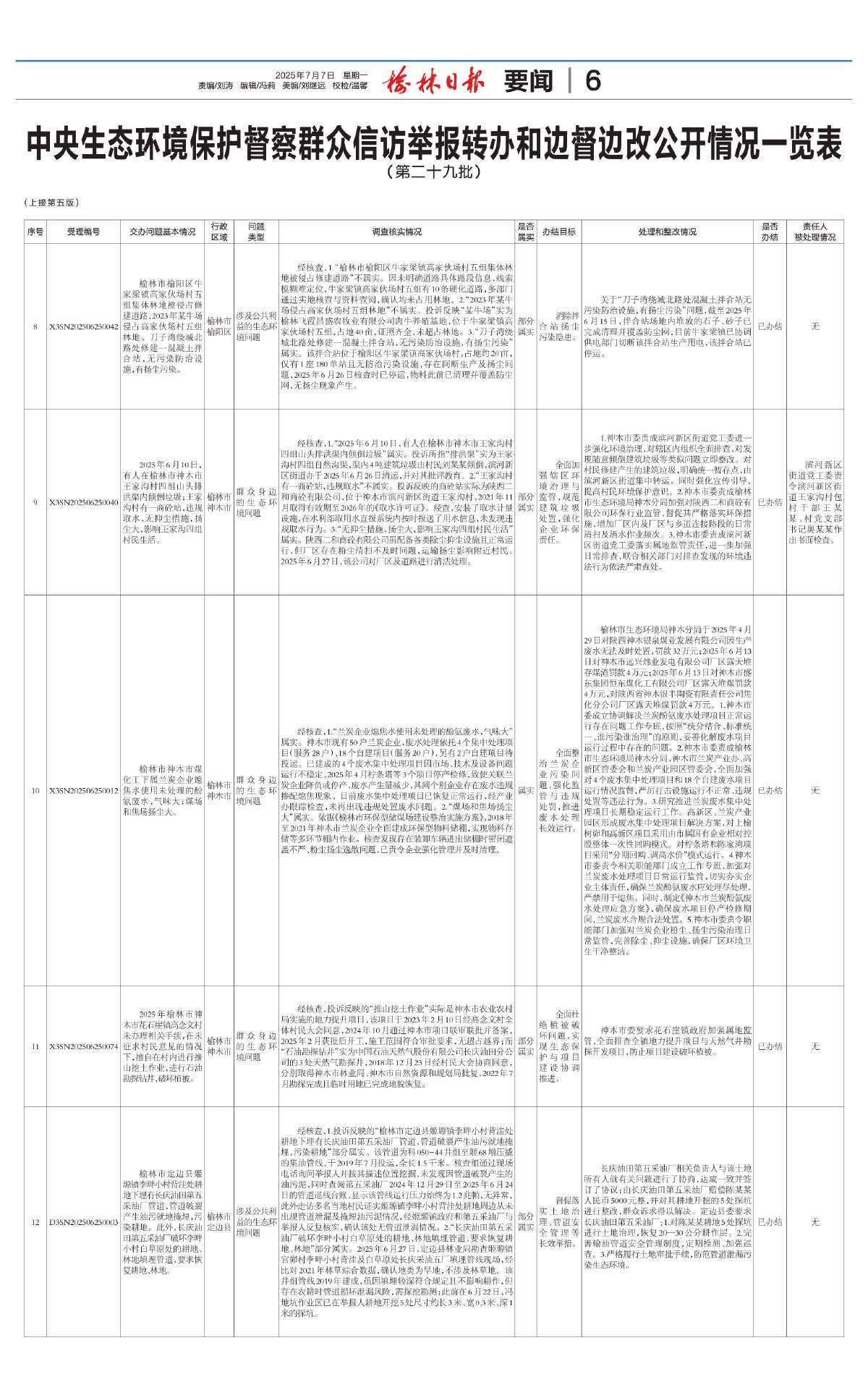 中央生态环境保护督察群众信访举报转办和边督边改公开情况一览表