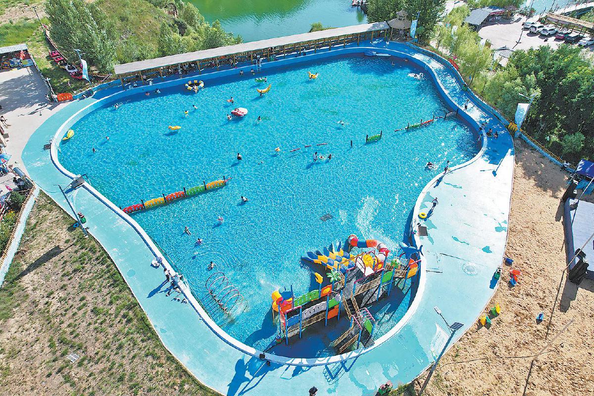 景区水上项目吸引众多游客(航拍图)。陈静仁 摄