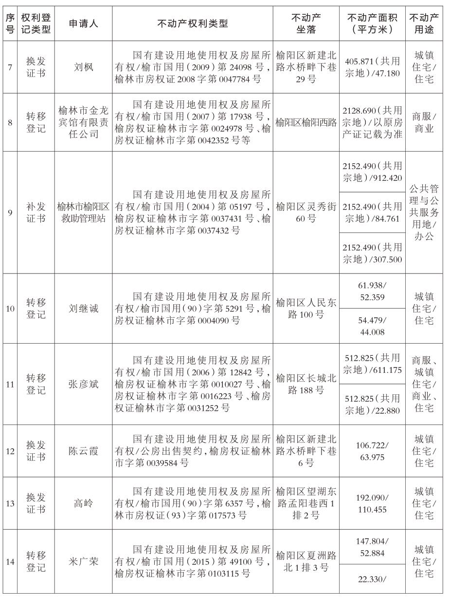 送达地址:榆林市榆阳区文化南路与泰安路交叉口市民大厦不动产登记中心908室。