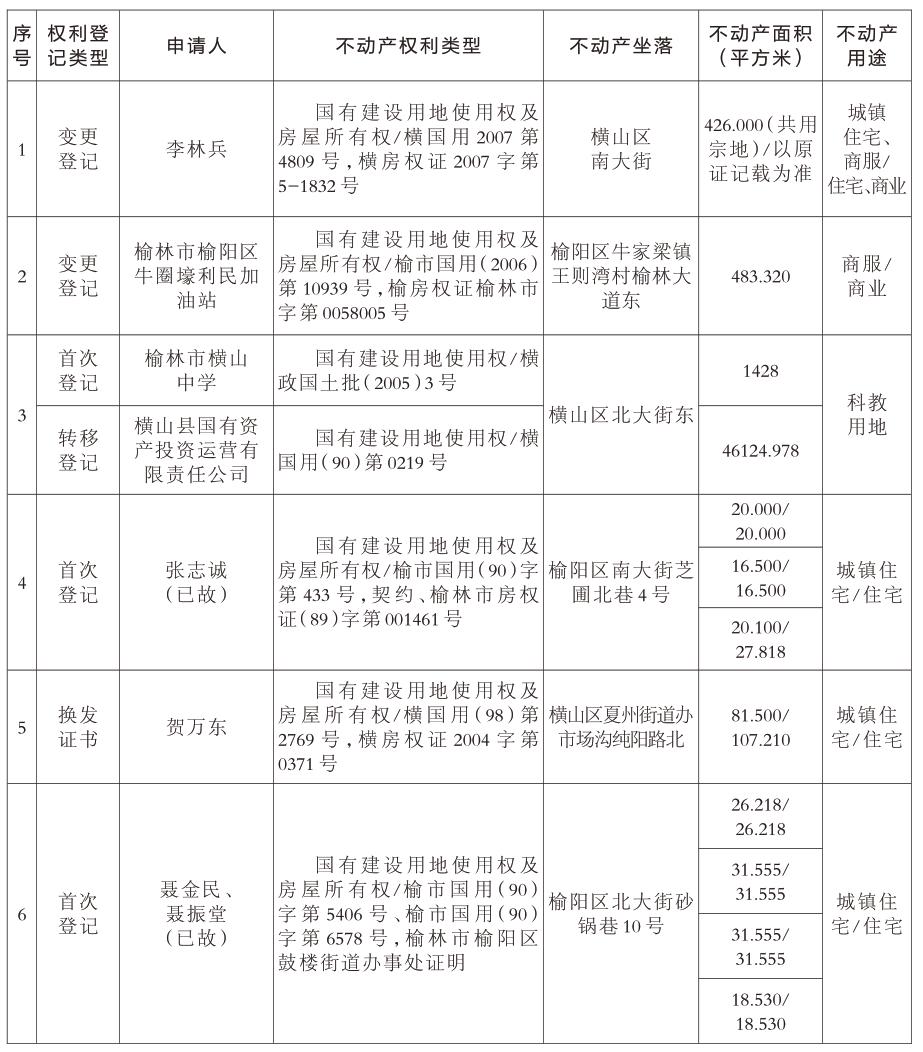 经初步审核,我中心拟对下列不动产权利办理换发证书、转移登记、变更登记、补发证书、首次登记不动产登记事项业务。根据《不动产登记暂行条例实施细则》第十七条的规定,现予以公告。如有异议,请自本公告发布之日起十五个工作日内将异议书面材料送达我中心。逾期无人提出异议或者异议不成立的,我中心将予以登记。