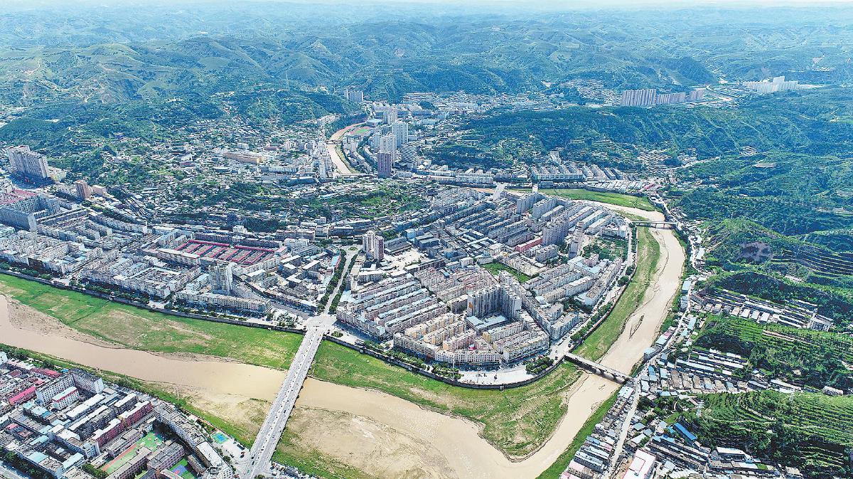 7月20日,一场夏雨过后,黄土高原迎来清新的气息。俯瞰绥德县城,大理河与无定河共同组成了一幅美丽的画卷。通讯员 刘涛 摄