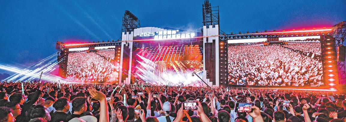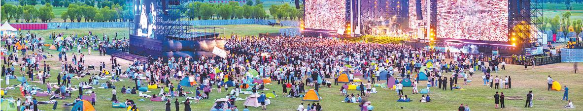 歌声悠扬处,是对脚下这片土地与心中那份惦念的深情告白。音符飘荡在草原之上,激起无数人心底的共鸣。从午后艳阳绵延至星光璀璨,每日的演出都持续8个多小时,但乐迷的热情始终如不灭之火,在塞上夏夜熊熊燃烧。台上与台下相融,歌声与呼喊交织,共同奏响草原与音符的动人旋律。