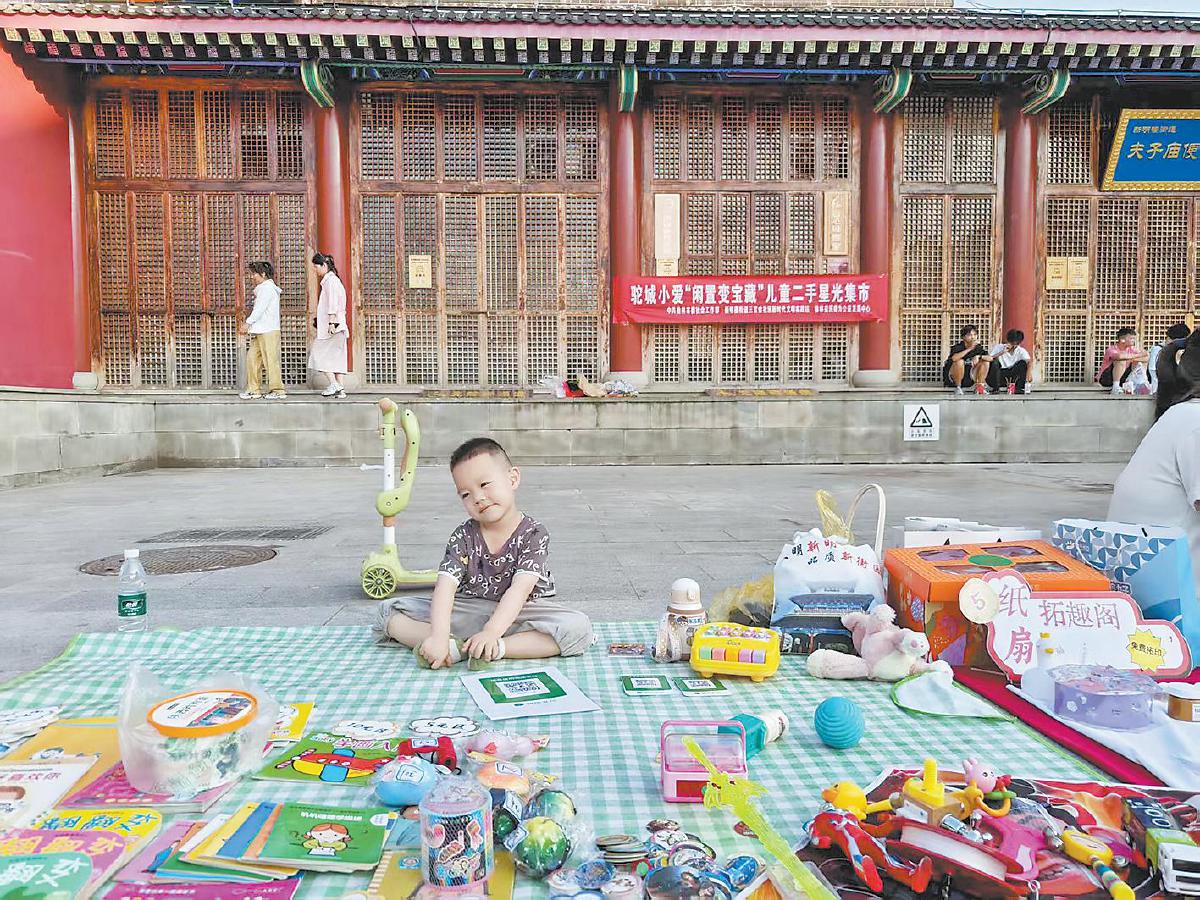 本报讯(记者 王红霞 通讯员 韩秋燕)近日,榆阳区新明楼街道三官会社区“驼城小爱”儿童二手星光集市热闹开售,一个个摆满闲置物品的摊位前人头攒动,孩子们的欢声笑语充满了整个社区。