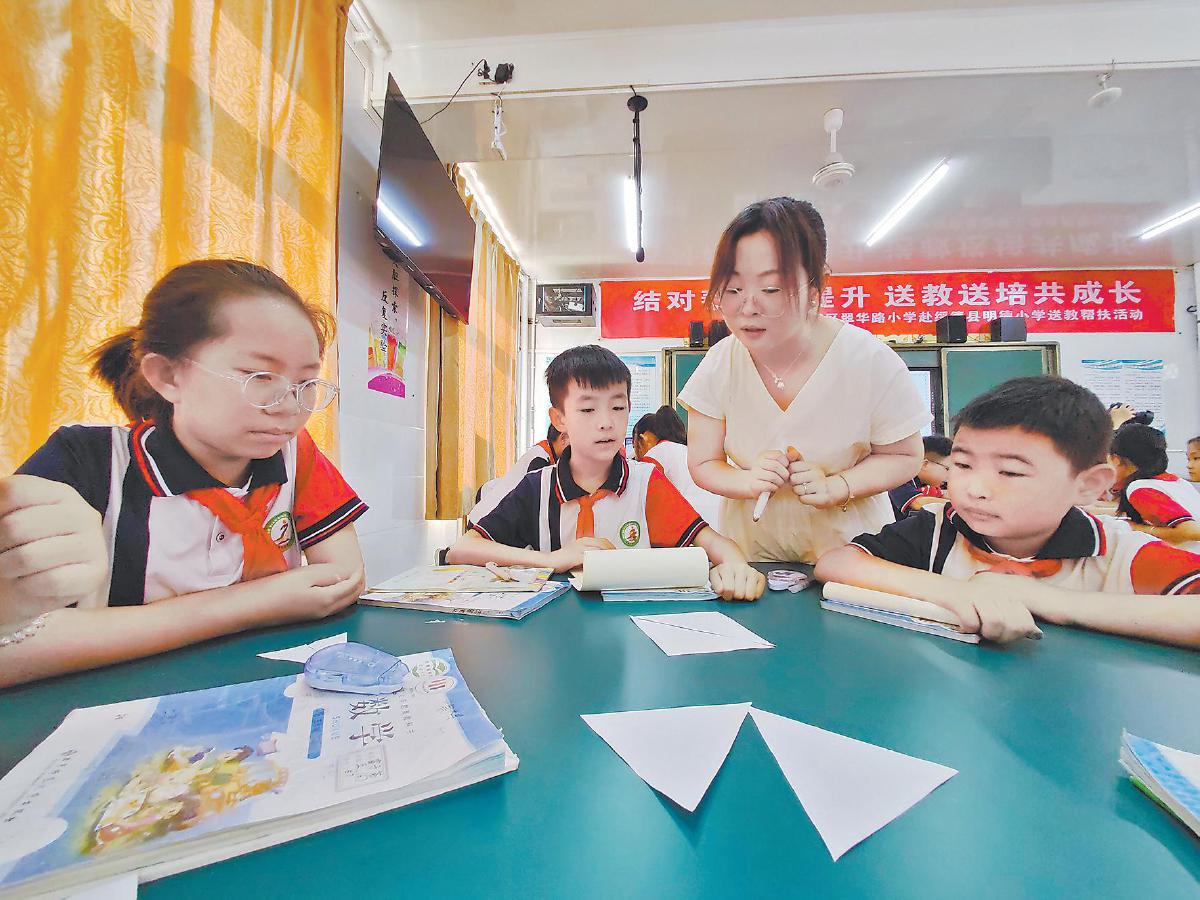 绥德县第二小学每间教室门口的小黑板上都写着与所在年级相对应的数学题目。课间休息,同学们便围在一起,低年级争解“分糖果”加减法,高年级讨论“鸡兔同笼”解法。本学期,该校以作业管理改革为突破口,通过系统推进“减量、提质、增效”工程,实现课堂质效双增,让学生真正爱上学习。