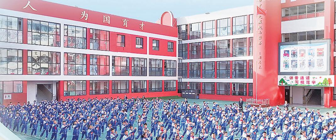 实验小学学生集体做早操。 张占林 摄