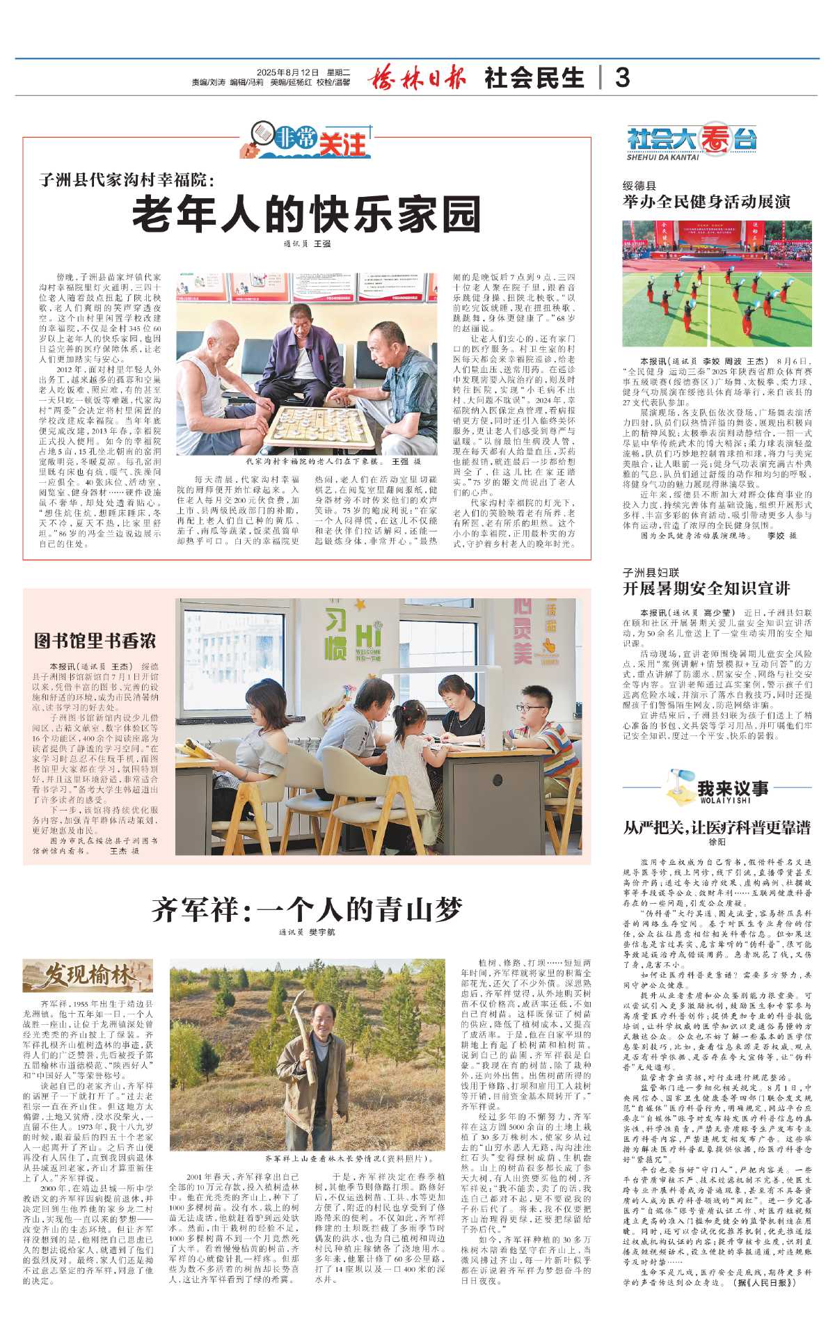 齐军祥,1955年出生于靖边县龙洲镇。他十五年如一日,一个人战胜一座山,让位于龙洲镇深处曾经光秃秃的齐山披上了绿装。齐军祥扎根齐山植树造林的事迹,获得人们的广泛赞誉,先后被授予第五届榆林市道德模范、“陕西好人”和“中国好人”等荣誉称号。