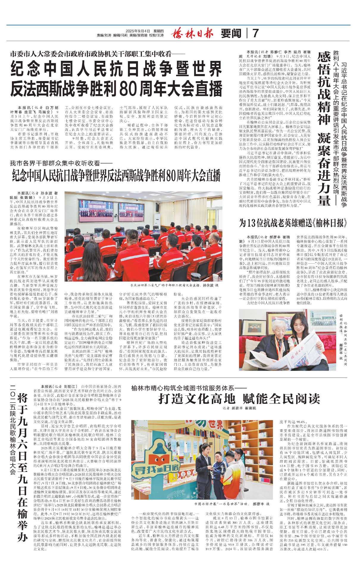 为13位抗战老英雄赠送《榆林日报》