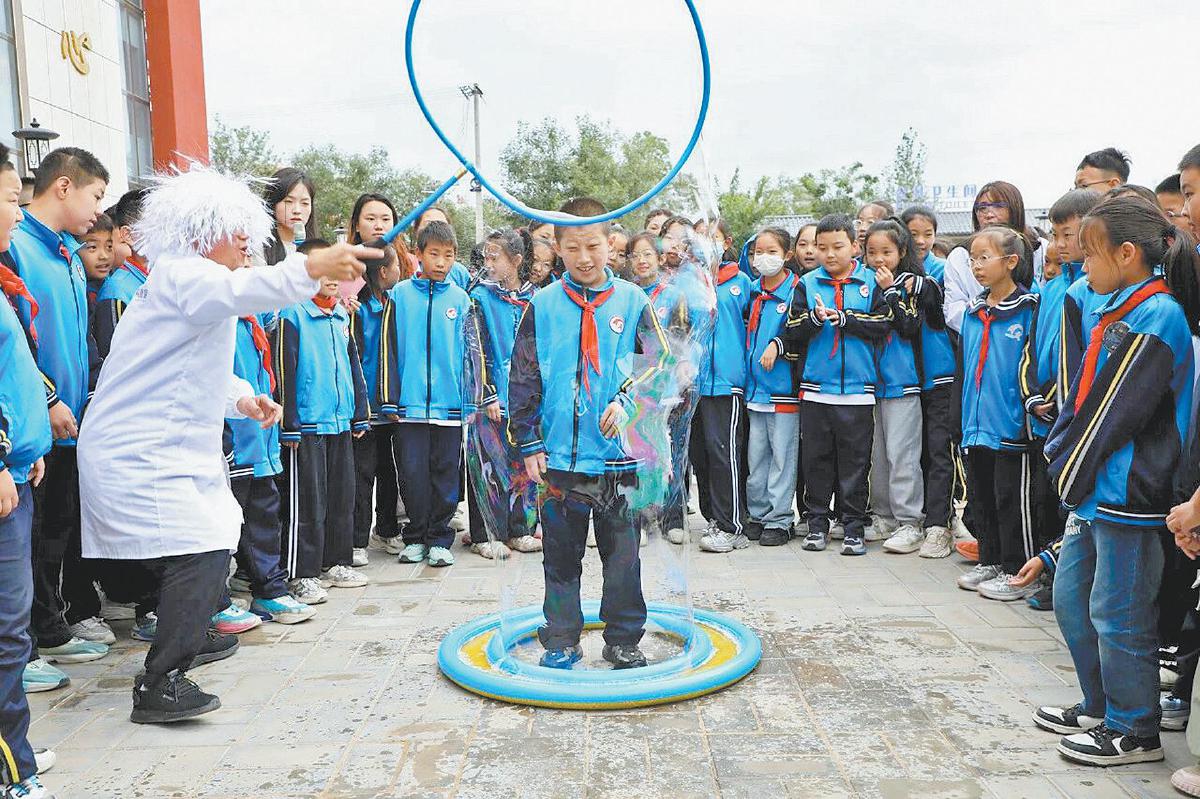 9月16日,榆阳区青云镇中心小学“魔法科学”主题活动现场(榆阳区融媒体中心供图)。