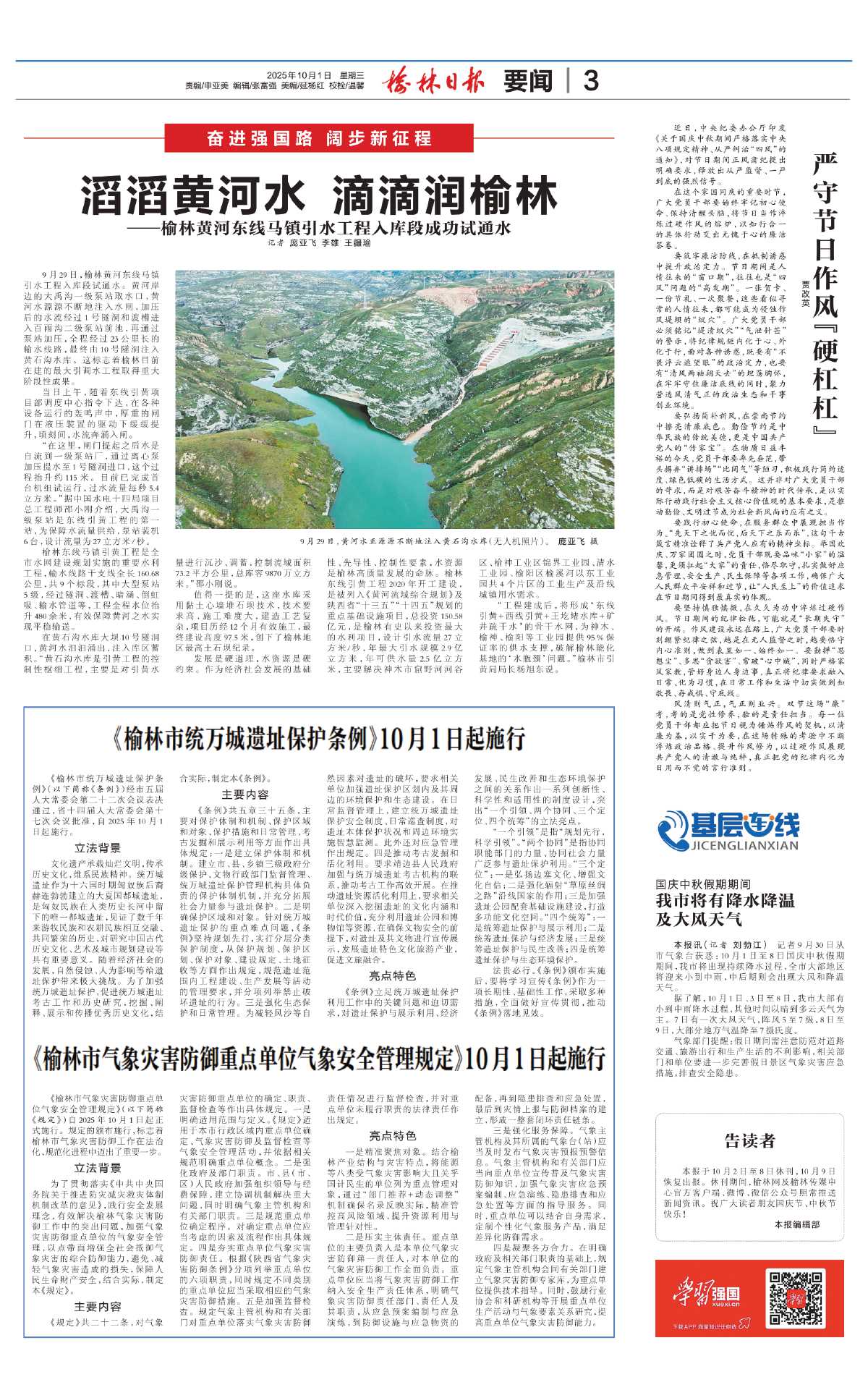 《榆林市气象灾害防御重点单位气象安全管理规定》10月1日起施行