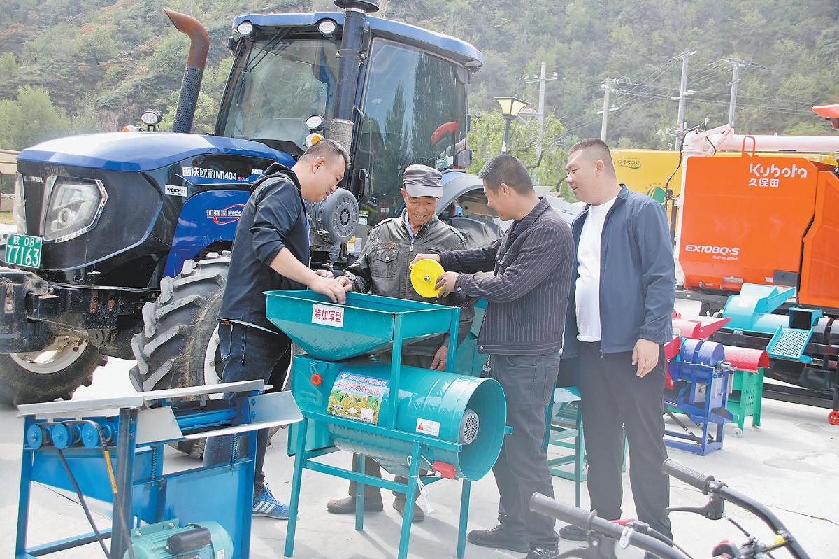 农机展示区则集中呈现了现代农业的“硬核”实力。新型联合收割机、智能播种机、无人机植保设备等整齐列队,科技感十足。米脂县农业农村局工作人员现场讲解农机作业效率与相关政策补贴,吸引众多农民围观咨询。“以前种地靠牛,现在靠‘铁牛’,省时省力,产量还高。”高西沟村村民高治前感慨。