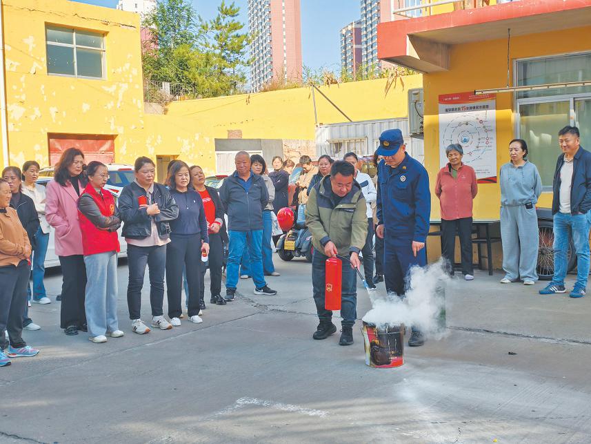 9月26日,榆阳区青山路街道福安社区开展消防安全演练。
