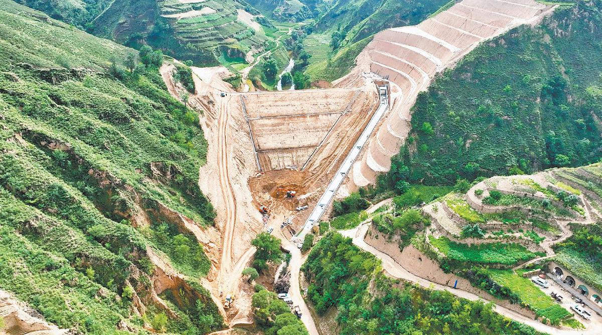 景家沟村前庙沟中型拦沙坝施工现场。闫峰 摄