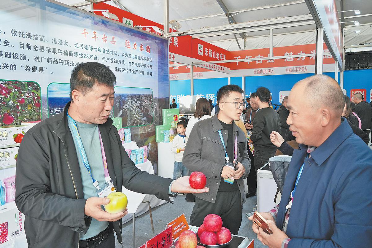 “我们的苹果生长在黄土高原山地,光照足、昼夜温差大,所以口感特别甜,果肉也脆。”该合作社理事艾喜红递上切好的苹果介绍,“这次农高会收获很大,已经和大型连锁超市、社区直供渠道达成两项合作!接下来,还想借助这个平台,寻找更多的合作伙伴,把米脂山地苹果卖到更多地方。”