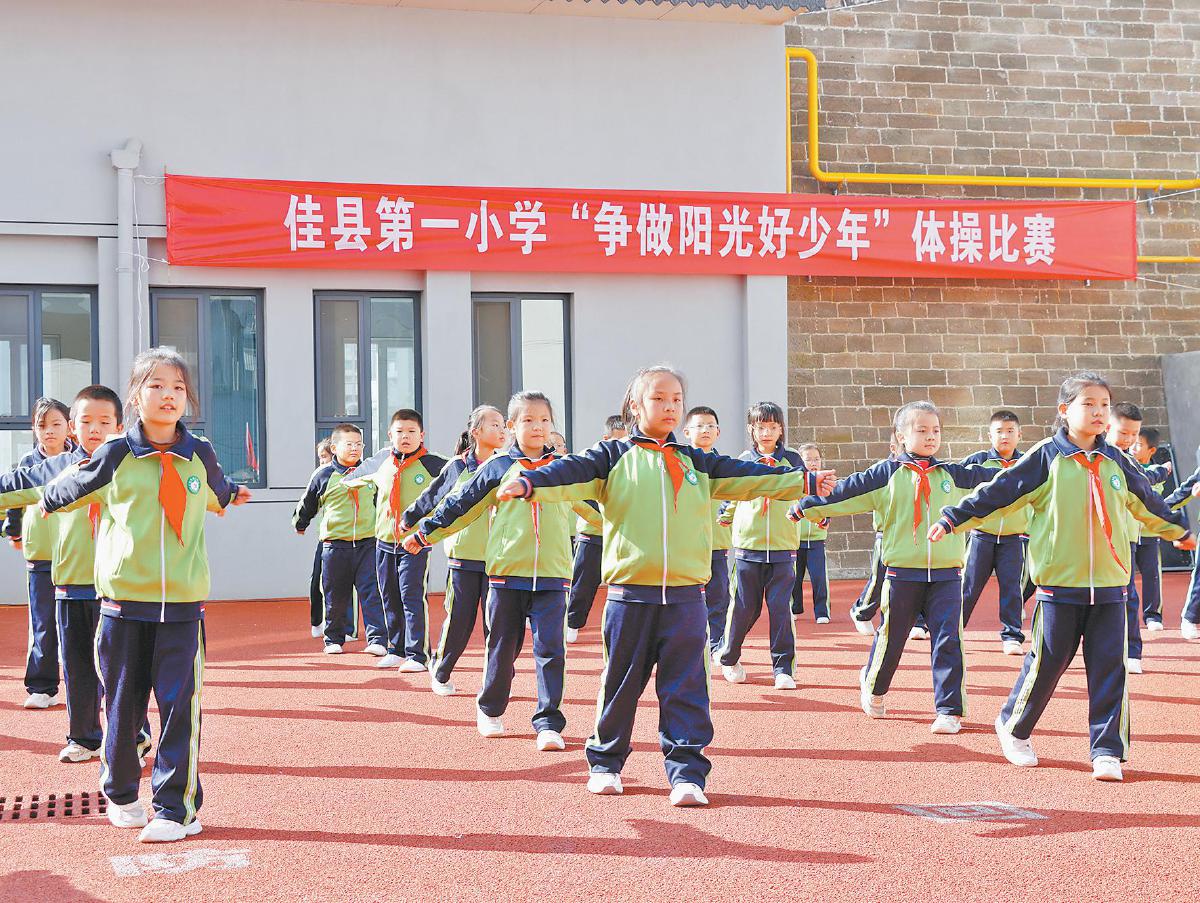 本报讯(通讯员 康亮亮) 10月28日,佳县第一小学举办“争做阳光好少年”体操比赛。