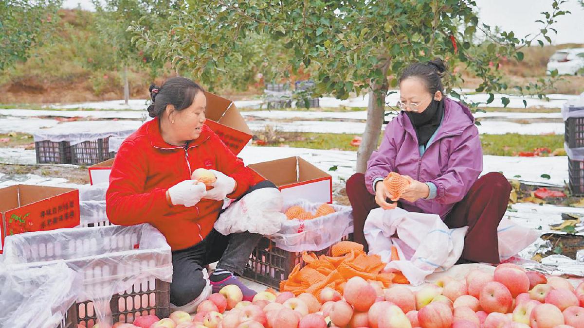 近日,走进横山区党岔镇杨口则村乡源种养殖专业合作社果园,果农穿梭在果树间,忙着采摘、分拣、装箱,今年果园预计产果50万斤、产值150万元,这得益于横山区园艺技术推广站的全程指导,从果树修剪、科学水肥到病虫害绿色防控,技术赋能产业升级,有效促进果园提质增效,让苹果成为带动群众增收的“金果子”。