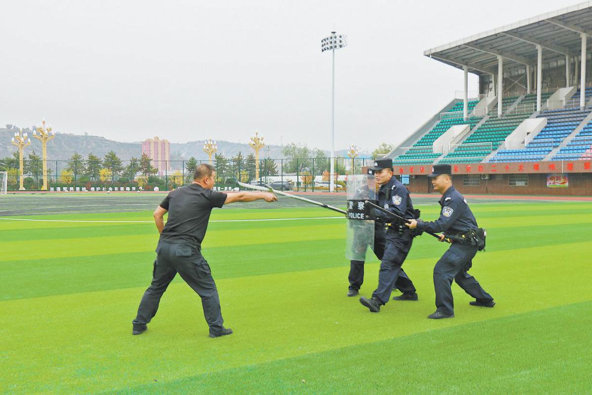 近日,府谷县公安局特巡警大队组织开展秋冬集训。这是训练现场。