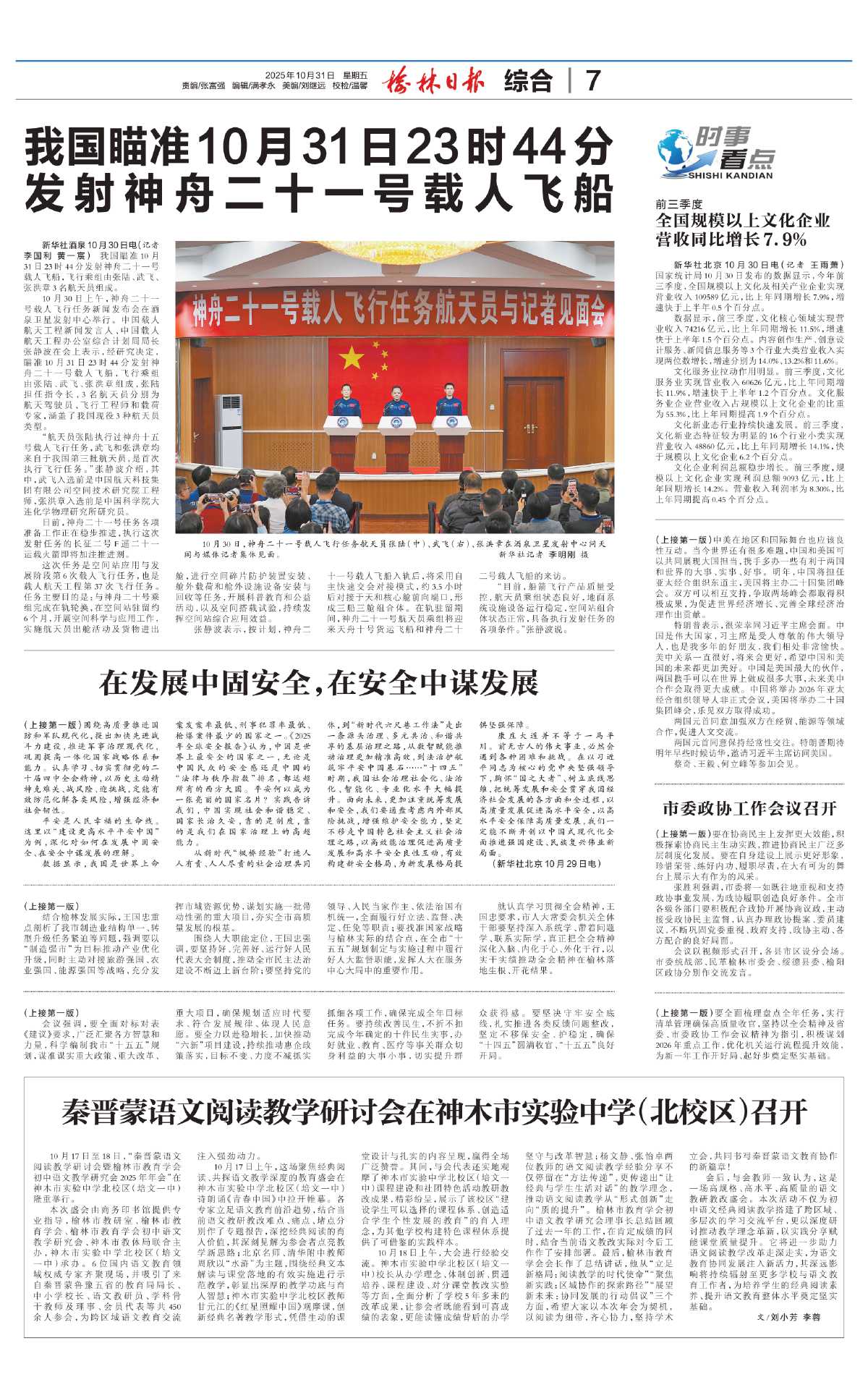 榆林日报 | 2025年10月31日