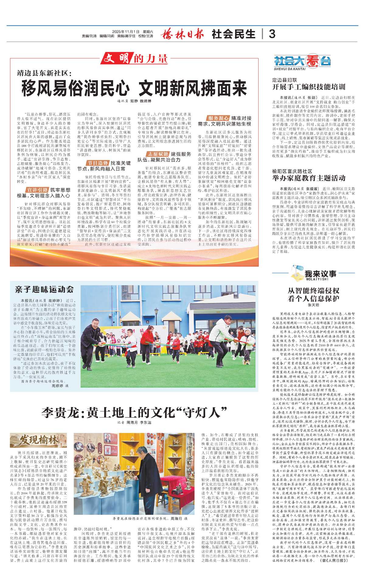 岁月虽让李贵龙的脚步不再轻快,腰腿也常隐隐作痛,但他守护文化的信念从未褪色。2024年,李贵龙被授予“全国离退休干部先进个人”荣誉称号。面对这份认可,他只说:“这更是一份责任。”如今,他手头不仅有4部志书正在编撰,还规划了5本书的出版计划,更把心血放在培养文化传承“接班人”上。“希望通过带着年轻人走访村落、考证史料、撰写志书,把这份对陕北文化的热爱与经验一点点传承下去。”李贵龙说。