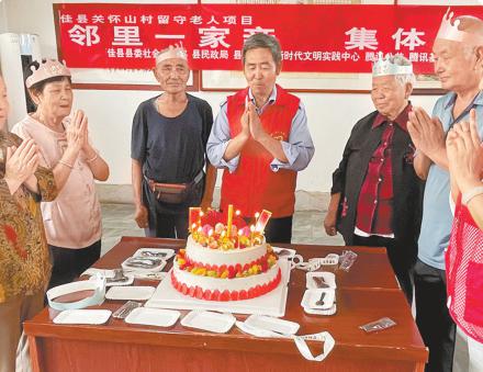 活动中,志愿者带来的歌舞表演引得台下老人频频鼓掌,趣味游戏环节更是让老人们在轻松互动间增进了交流。集体生日庆典时,志愿者推出生日蛋糕,全体人员齐唱生日歌,大家分享甜蜜,感受集体大家庭的温暖。“这么多人一起热热闹闹地过生日,非常感动,感谢志愿者对老人的关心关爱。”峪口村村民高兰珍说。