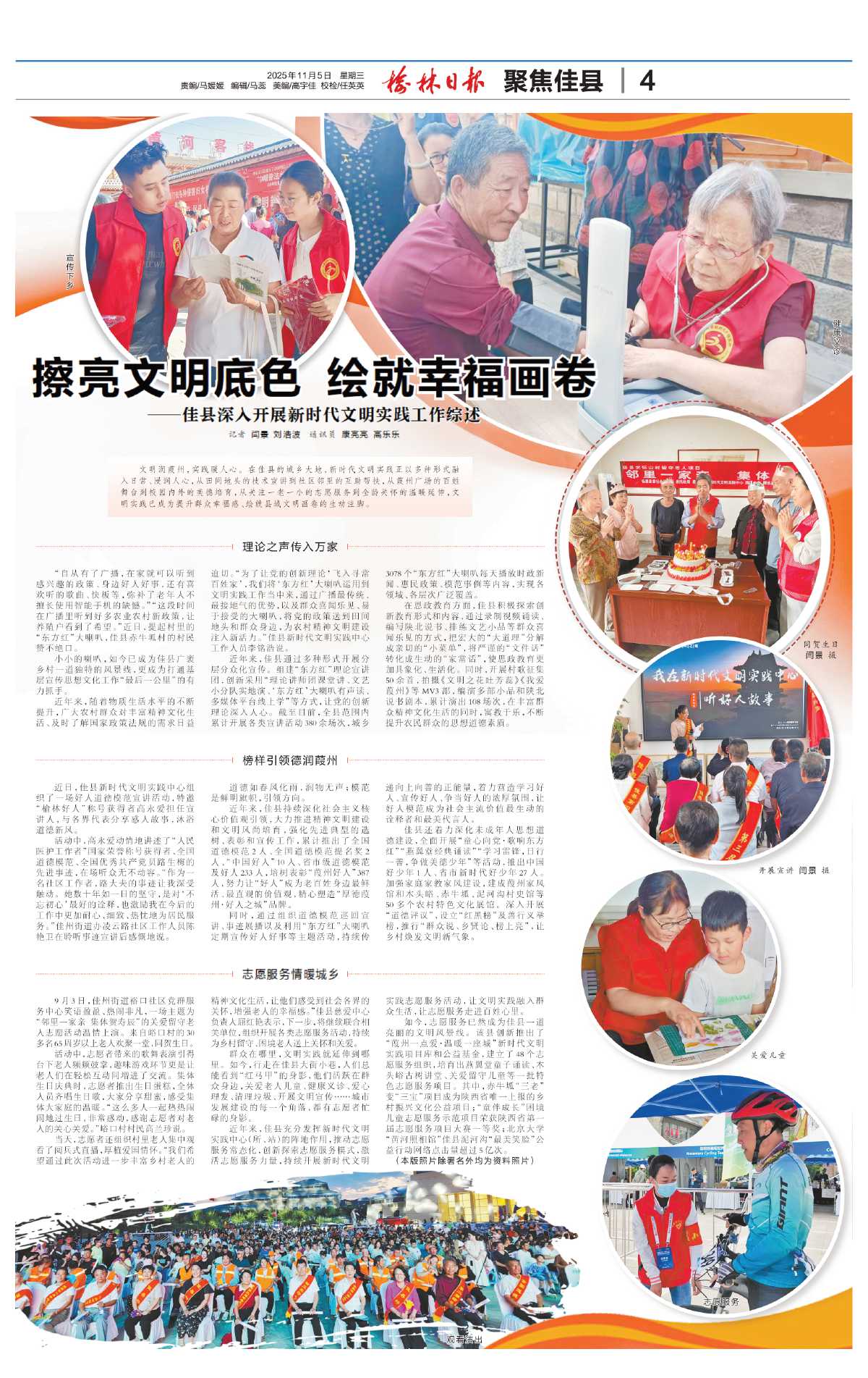 文明润葭州,实践暖人心。在佳县的城乡大地,新时代文明实践正以多种形式融入日常、浸润人心,从田间地头的技术宣讲到社区邻里的互助帮扶,从葭州广场的百姓舞台到校园内外的美德培育,从关注一老一小的志愿服务到全龄关怀的温暖延伸,文明实践已成为提升群众幸福感、绘就县域文明画卷的生动注脚。