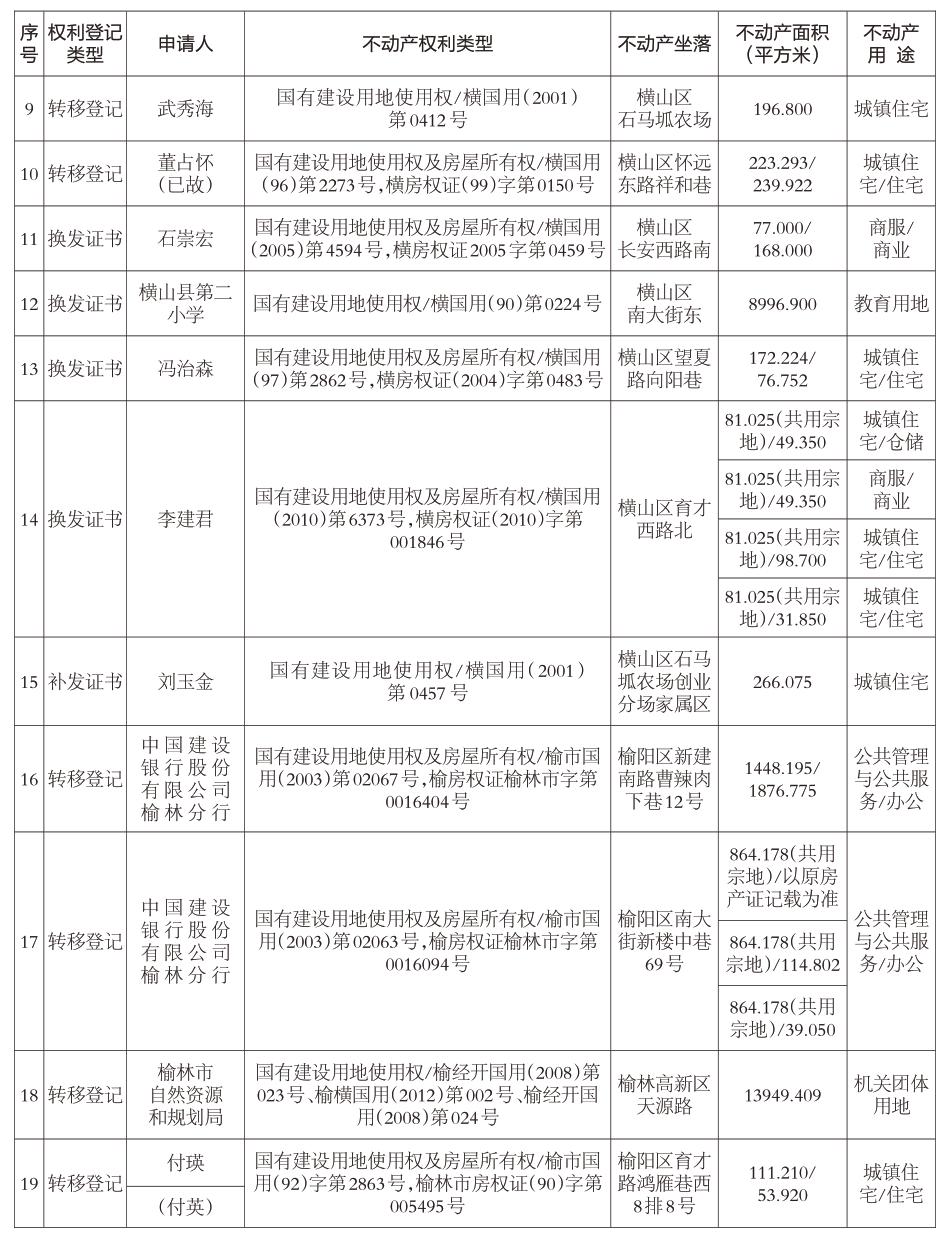 送达地址:榆林文化南路与泰安路交叉口市民大厦不动产登记中心908室。