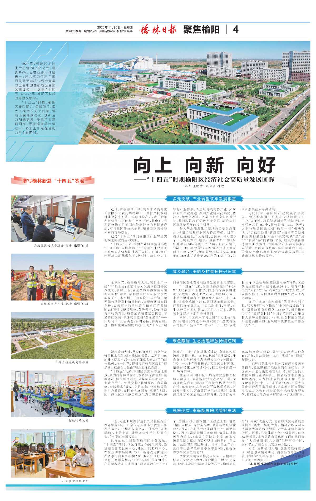 “十四五”时期,榆阳区凝心聚力、勇毅前行,重大工程建设如火如荼,营商环境持续优化,创新活力加速迸发,多元产业深耕细作,民生福祉稳步增进……多项工作走在全市乃至全省前列。