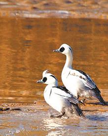 鸭科中的“迷你潜水员”,雄鸟体羽黑白色,头部具黑色斑纹;雌鸟上体黑褐,头顶栗色。神木、榆阳的湖泊与河流中,以小鱼、水生昆虫为食,潜水时灵活如“水中闪电”。