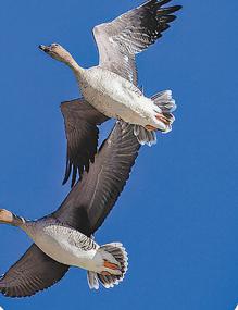 “鸿雁传书”的主角,嘴黑色,体羽浅灰褐,头顶至后颈暗棕褐,前颈近白,远观黑白分明。神木、榆阳、横山的湿地中,常结群迁徙,队列如“人”或“一”字。