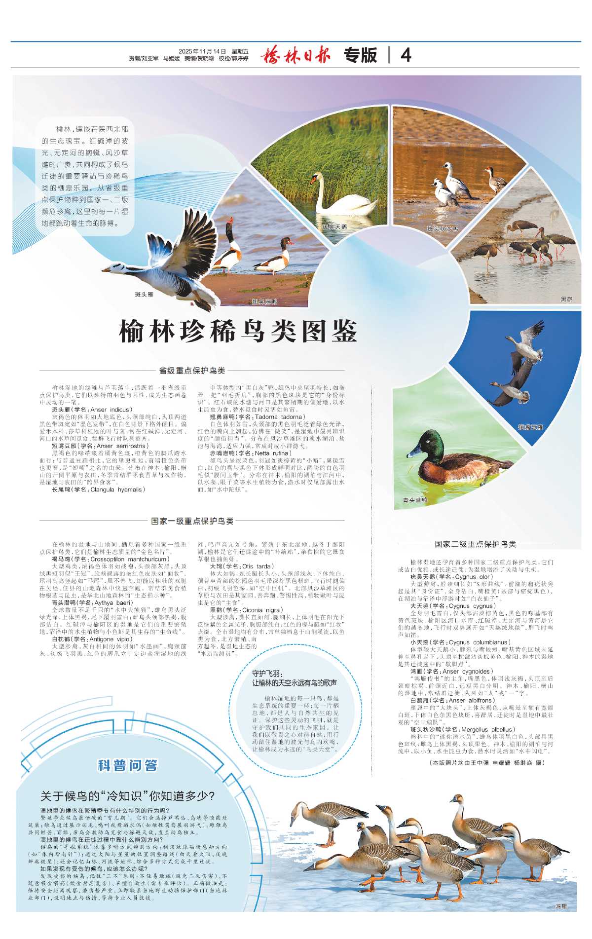 在榆林的湿地与山地间,栖息着多种国家一级重点保护鸟类,它们是榆林生态质量的“金色名片”。