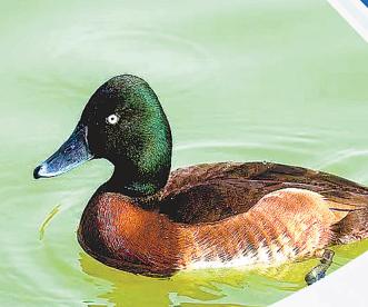 雄鸟头呈浓栗色,羽冠如淡棕黄的“小帽”,翼镜雪白,红色的嘴与黑色下体形成鲜明对比,两胁的白色羽毛似“腰间玉带”。分布在神木、榆阳的湖泊与江河中,以水藻、眼子菜等水生植物为食,潜水时仅尾部露出水面,如“水中陀螺”。