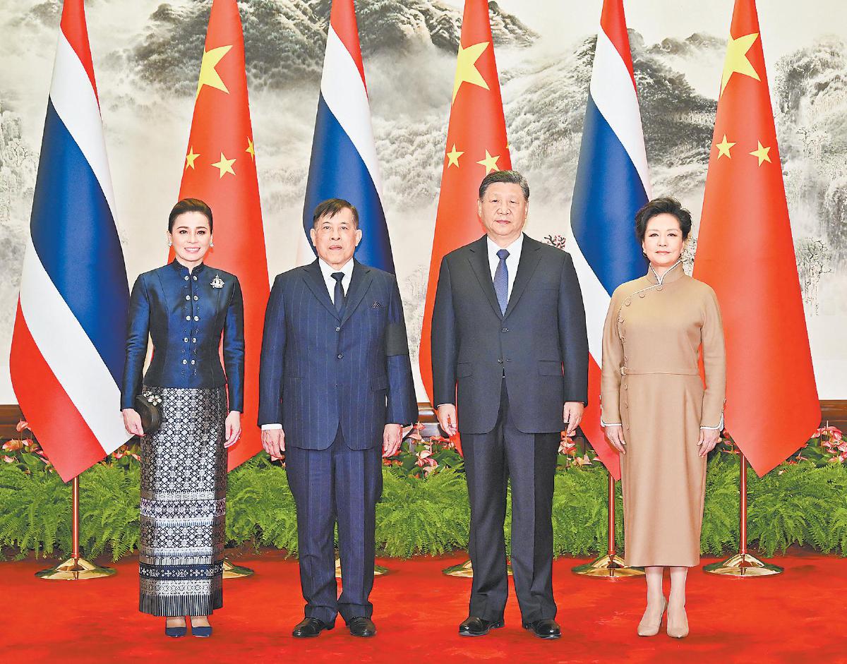 习近平表示,哇集拉隆功国王将中国作为首个国事访问的大国,成为中泰建交以来首位访华的泰国国王,充分体现了对中泰关系的高度重视和“中泰一家亲”的深厚情谊。习近平对诗丽吉王太后不久前逝世表示哀悼,指出泰国王室同中国渊源深厚,为促进中泰友好作出重要贡献,中方对此深表赞赏。今年是中泰建交50周年暨“中泰友谊金色50年”。建交半个世纪以来,面对国际风云变幻,中泰两国始终并肩携手、守望相助,是真正的好亲戚、好朋友、好伙伴。站在新的历史起点,我愿同哇集拉隆功国王引领中泰命运共同体建设在下一个50年取得更大进展,共同书写中泰友好的新篇章。