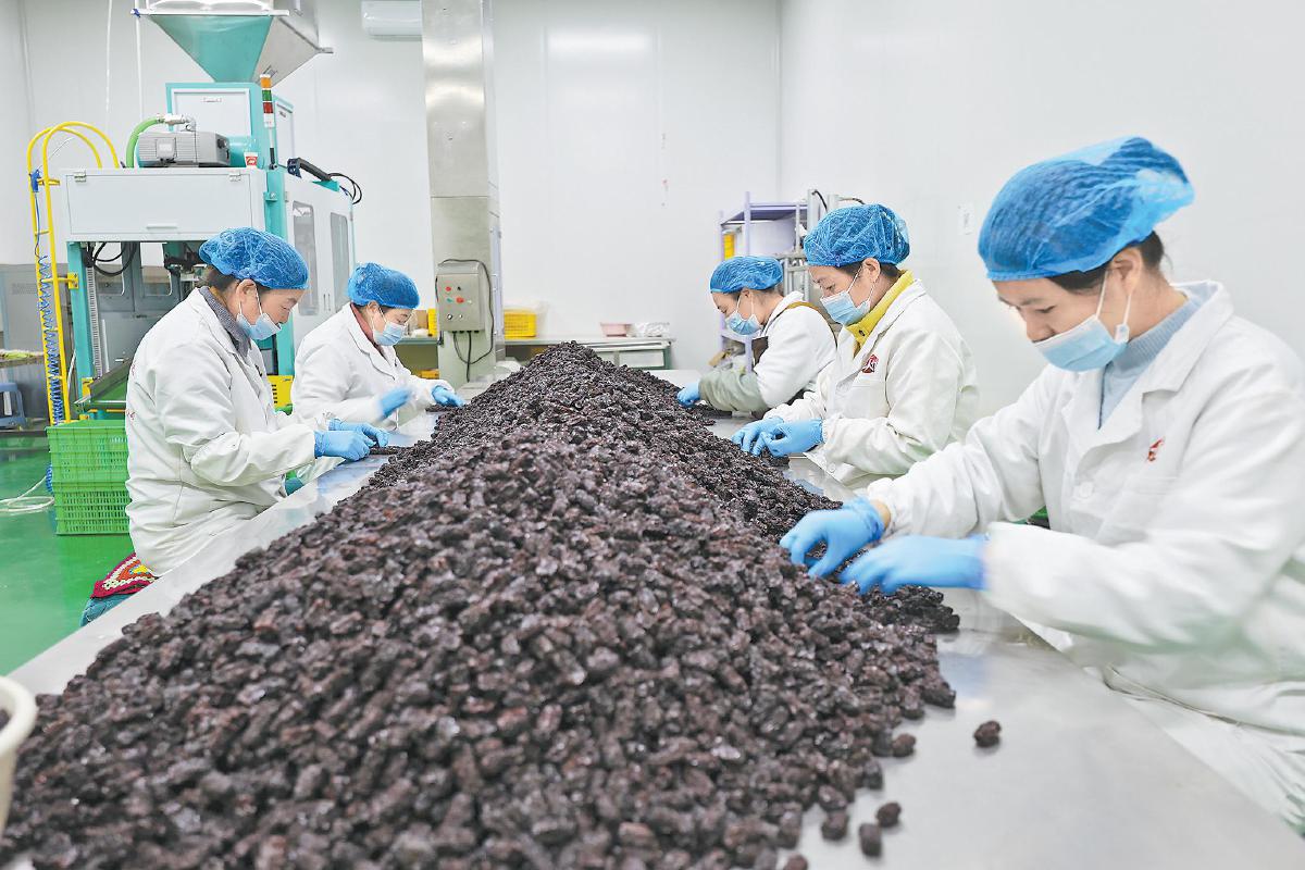 工人正在分拣红枣产品。刘婕宇 摄
