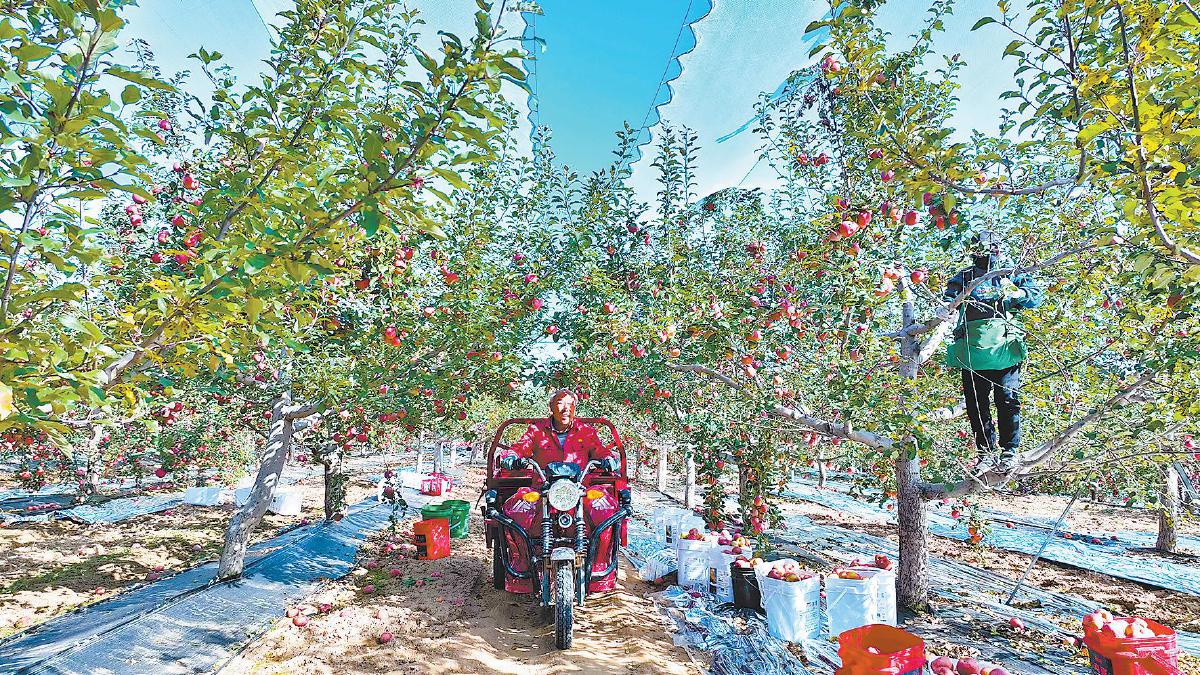 “现在管理果树早不是过去的粗放模式了!”农场负责人肖波拿起一颗苹果笑着说,“县园艺技术推广中心给了我们不少支持,水肥一体化、科学疏果这些技术用上后,苹果品质和产量都提上来了,收益能有140多万元。”
