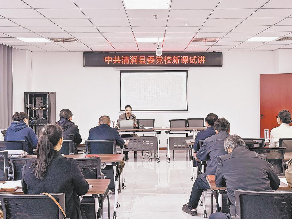清涧县委党校教学内容突出主责主业,党的理论教育和党性教育课程占比达70%,年度专题更新率保持在30%以上,党性教育课时不低于总课时的20%。此外,班次设置科学规范,实现全县科级领导干部、基层党组织书记、各镇(办、中心)教育培训全覆盖。
