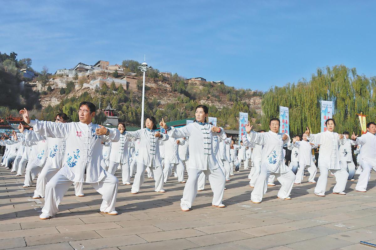 近年来,佳县坚持“红色文化养心、绿色文化养肺、枣果文化养身、太极文化养性、黄河文化养情、民歌艺术养韵”的“六养”总体发展思路,大力推广和普及太极拳运动,传承弘扬中华武术文化,打造葭州太极文化名城,助力国家全域旅游示范区创建。