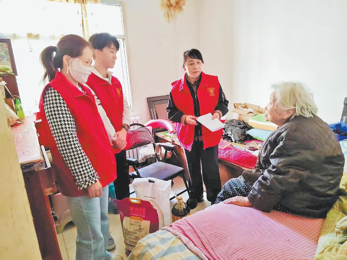 田爱爱(右二)和志愿者一起看望社区困难老人。张瑜 摄