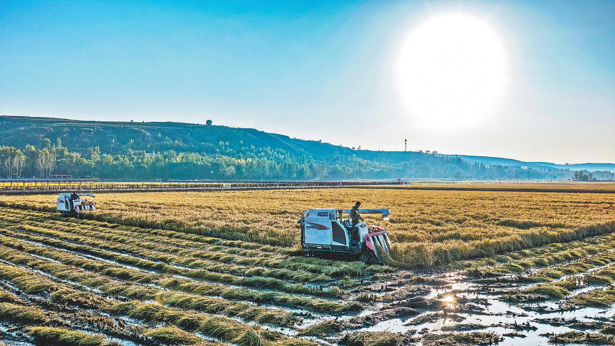 榆阳区鱼河镇的机械化实践则彰显了社会化服务的温度。“我们农场农机覆盖率达到95%以上。今年在政府补贴下添置了5台新式水稻联合收获机。”当地最大的水稻种植户鱼河四娃家庭农场负责人常成说。这些设备在完成自家2500多亩稻田收割的同时,还为周边小农户提供代收、代储、代加工等“一条龙”服务。这种“大带小”的协作模式有效化解小农户的收获问题,确保粮食“应收尽收”。