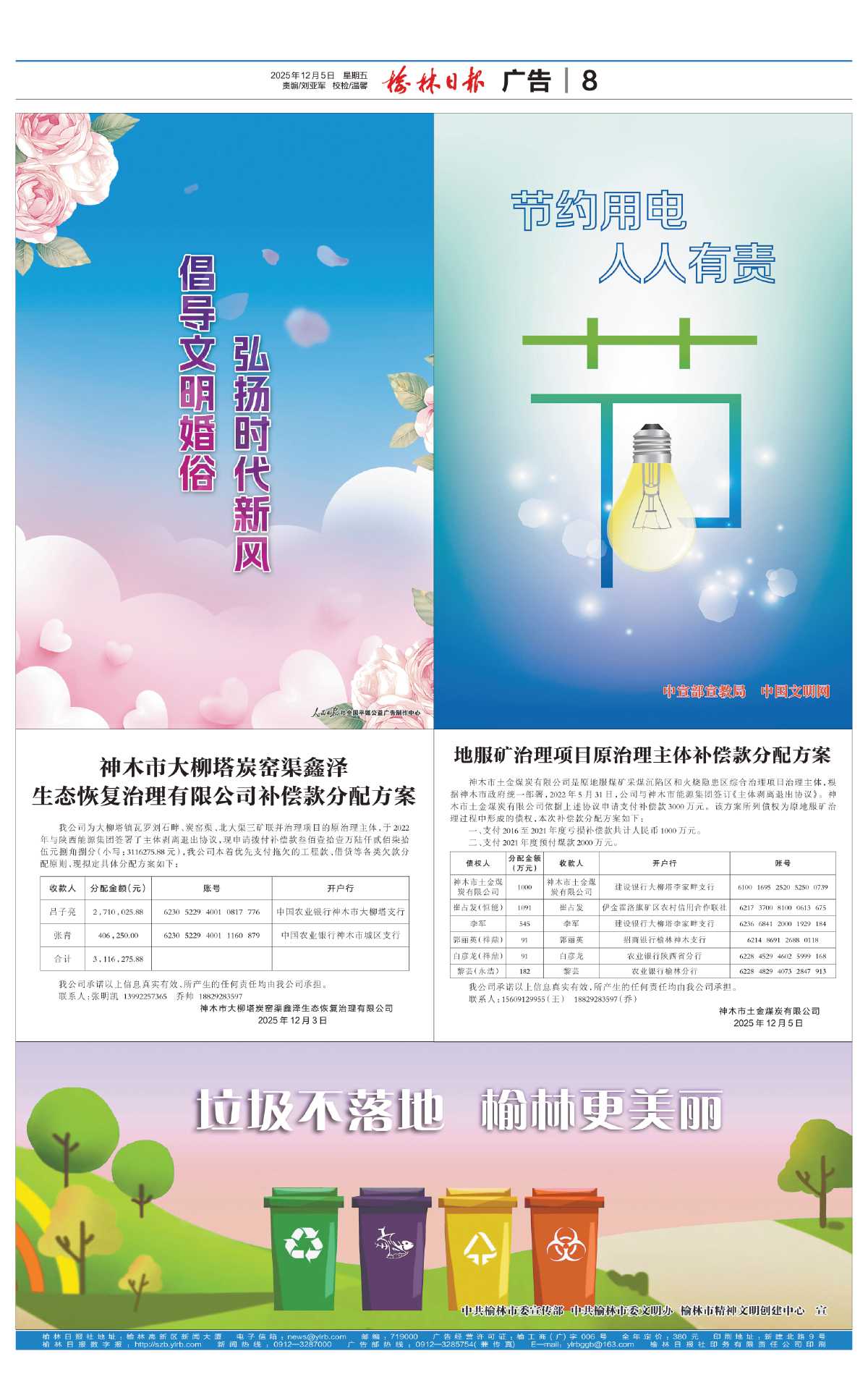 神木市大柳塔炭窑渠鑫泽生态恢复治理有限公司补偿款分配方案