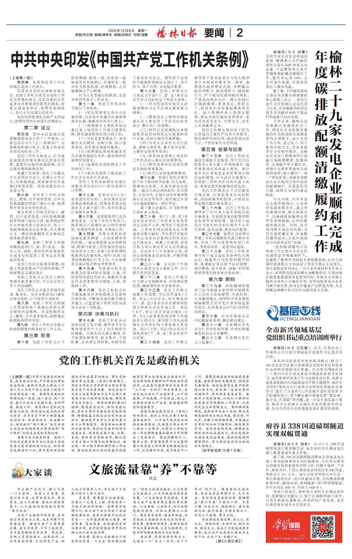 本报讯(通讯员 刘欢) 12月1日,338国道碛塄隧道实现双幅贯通,标志着府谷县城过境公路工程建设迎来重大突破。