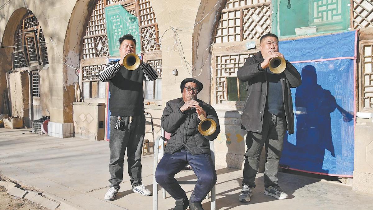 2024年冬,祖孙三人合奏唢呐。 闫峰 摄