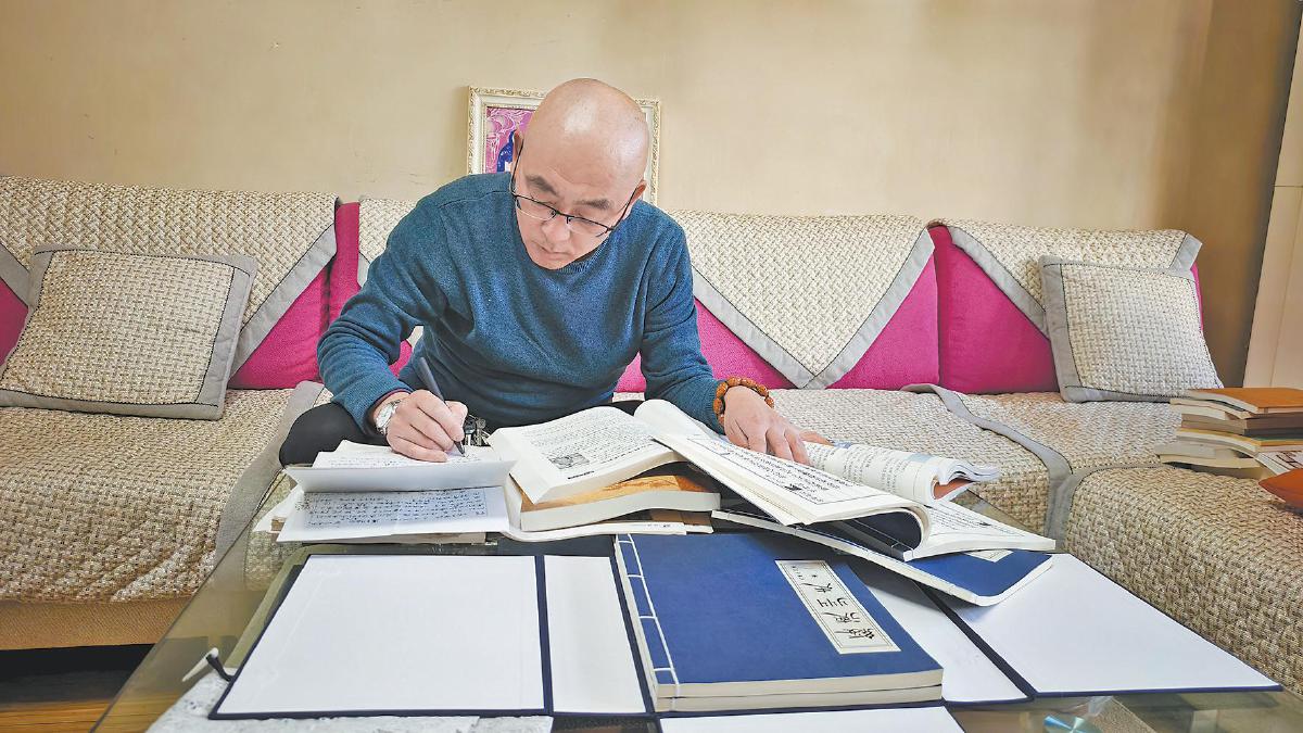 延生斌伏案整理碑文拓片。刘涛 摄