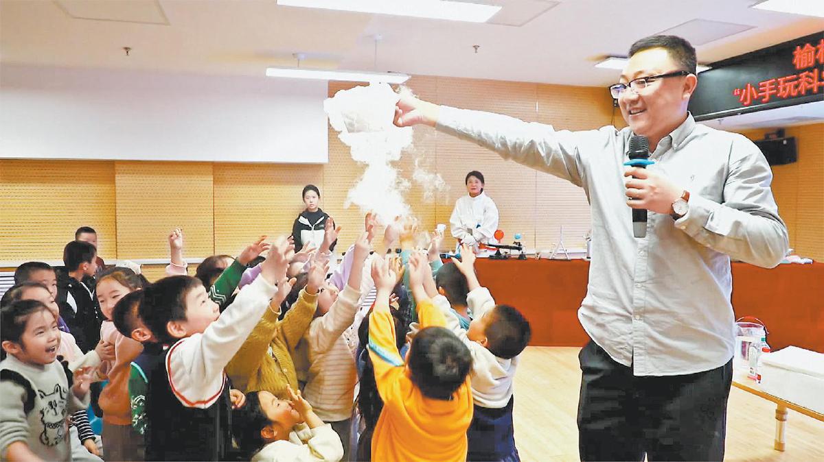 在互动体验环节,各种有趣的科学小实验和科技产品,让孩子们不时发出惊叹声。“我们把科技探索与幼儿生活经验、认知水平相融合,设计了磁铁奥秘、静电探索、动植物探究等系列主题活动,让幼儿在观察、操作、实验中感受科技魅力,播下科学种子。”高新六幼教师李佳蓉说。