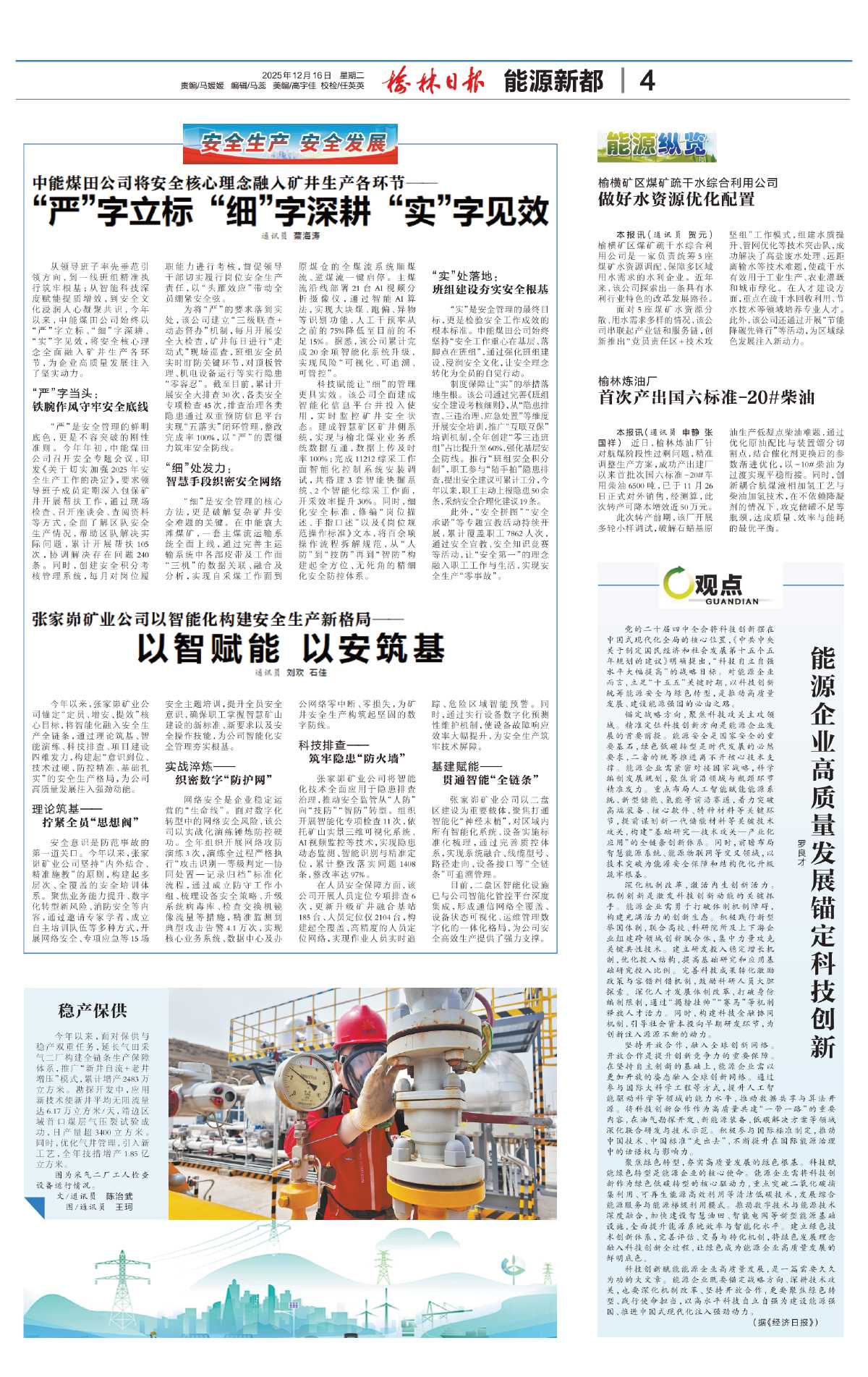 本报讯(通讯员 贺元)榆横矿区煤矿疏干水综合利用公司是一家负责统筹5座煤矿水资源调配、保障多区域用水需求的水利企业。近年来,该公司探索出一条具有水利行业特色的改革发展路径。