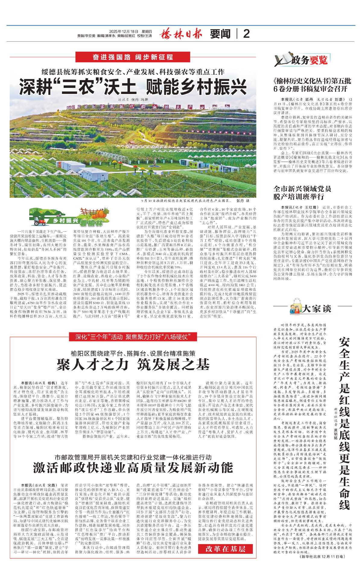 本报讯(通讯员 宋晶) 笔者日前从市邮政管理局获悉,该局聚焦推动全市邮政快递业高质量发展,部署开展机关党建和行业党建一体化推进行动,着力构建以“模范机关建设”和“红色快递培育”为支撑,以治理和服务为引擎的“一体两翼双驱动”党建工作新格局,为谱写中国式现代化榆林实践崭新篇章作出新的更大贡献。