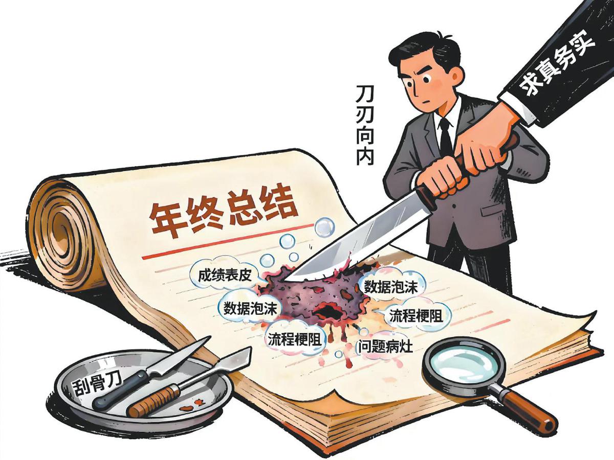 复盘过往,核心是正视不足而非回避差距。现实中,部分总结重亮点轻问题,溢美之词多、务实剖析少,看似圆满实则无效。这类避重就轻的总结,既找不准工作堵点,也难明晰后续路径,只会让小问题积成大隐患。