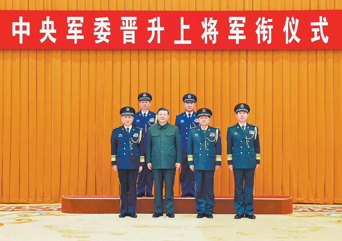 新华社北京12月22日电(记者 梅常伟)中央军委晋升上将军衔仪式22日在北京八一大楼举行。中央军委主席习近平出席晋衔仪式。